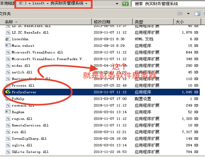这里找到服务软件安装目录(在Windows 7及以上的系统里右击桌面财务管理软件图标点击打开文件所在位置,Windows XP系统点属性,然后点查找目标)