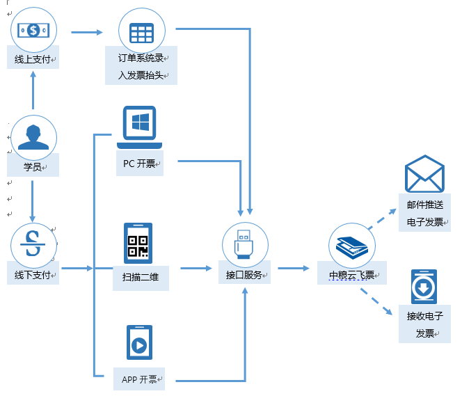  在现场收培训费时,通过POS机或其他管理系统打印开票二维码,学员自行扫码开票;